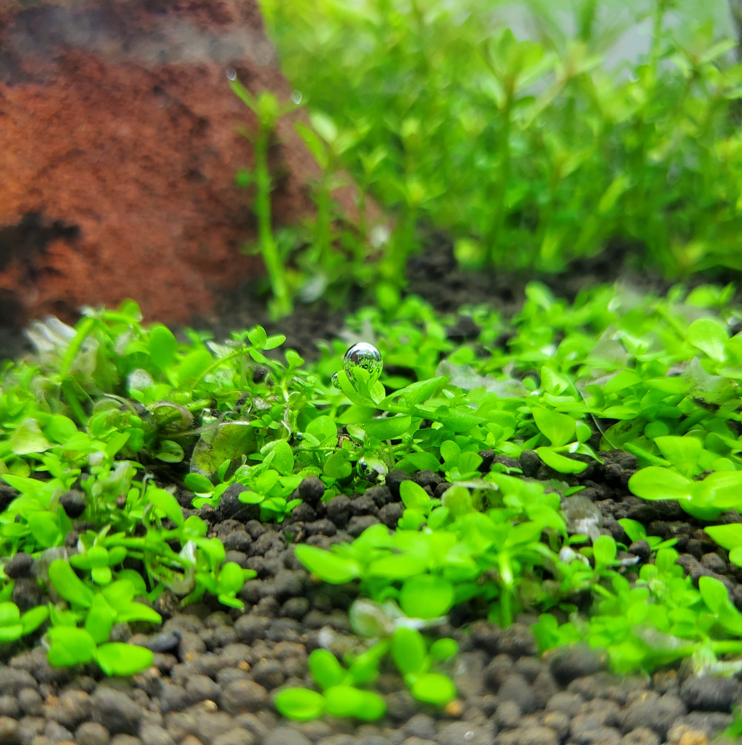 조명을 한참 켜놓으면 광합성을 해서 아주 작은 산소 방울들이 총총히 수면으로 올라온다.